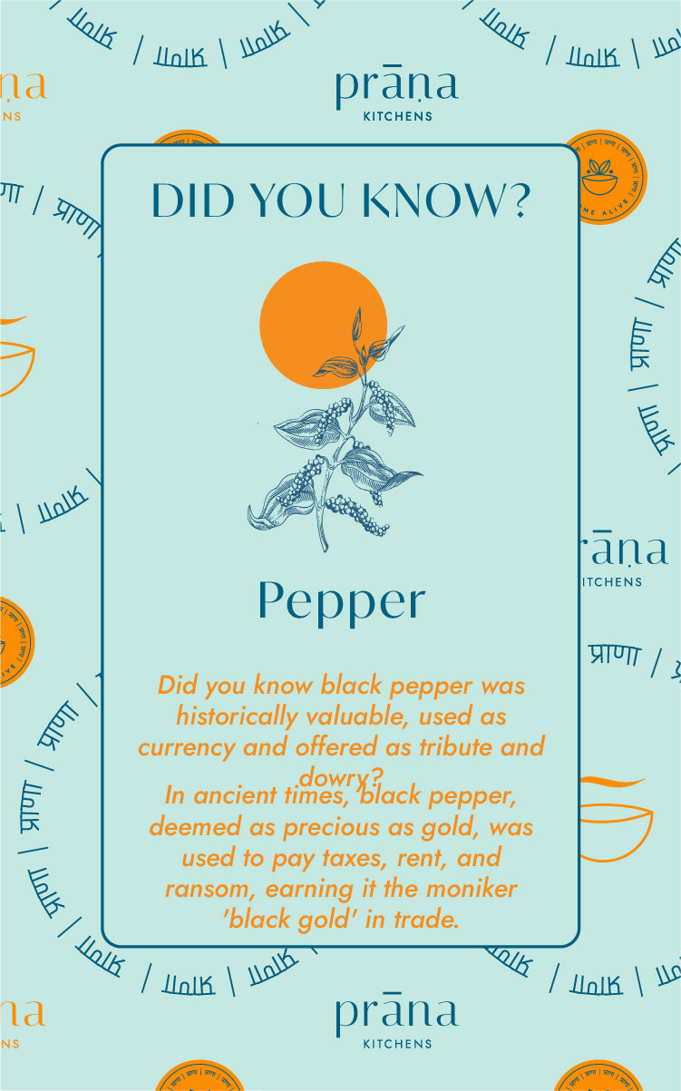 Peppercorns, known as ‘Black Gold’, stimulate appetite and kindle the digestive fire (Agni). We source this from Mr. Laiju, a Vriksha Ayurveda practitioner, advancing our shared mission of organic, Ayurveda-informed agriculture.