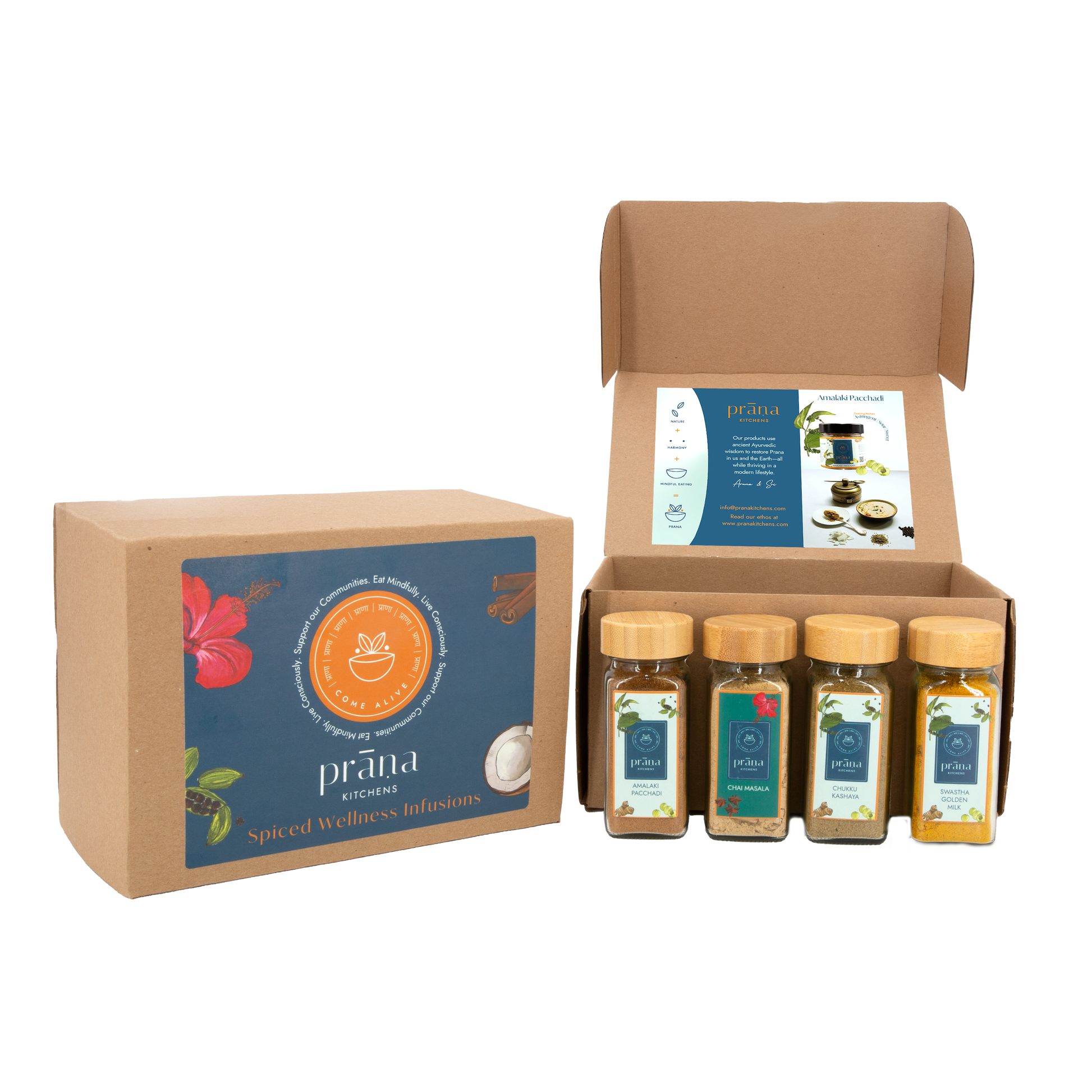 × DRY GINGER POWDER*, CUMIN*, TULSI* (KRISHNA, RAMA & VANA TULSI), CORIANDER POWDER*, FENNEL POWDER*, CARDAMOM POWDER*, BLACK PEPPER* (*ORGANIC)