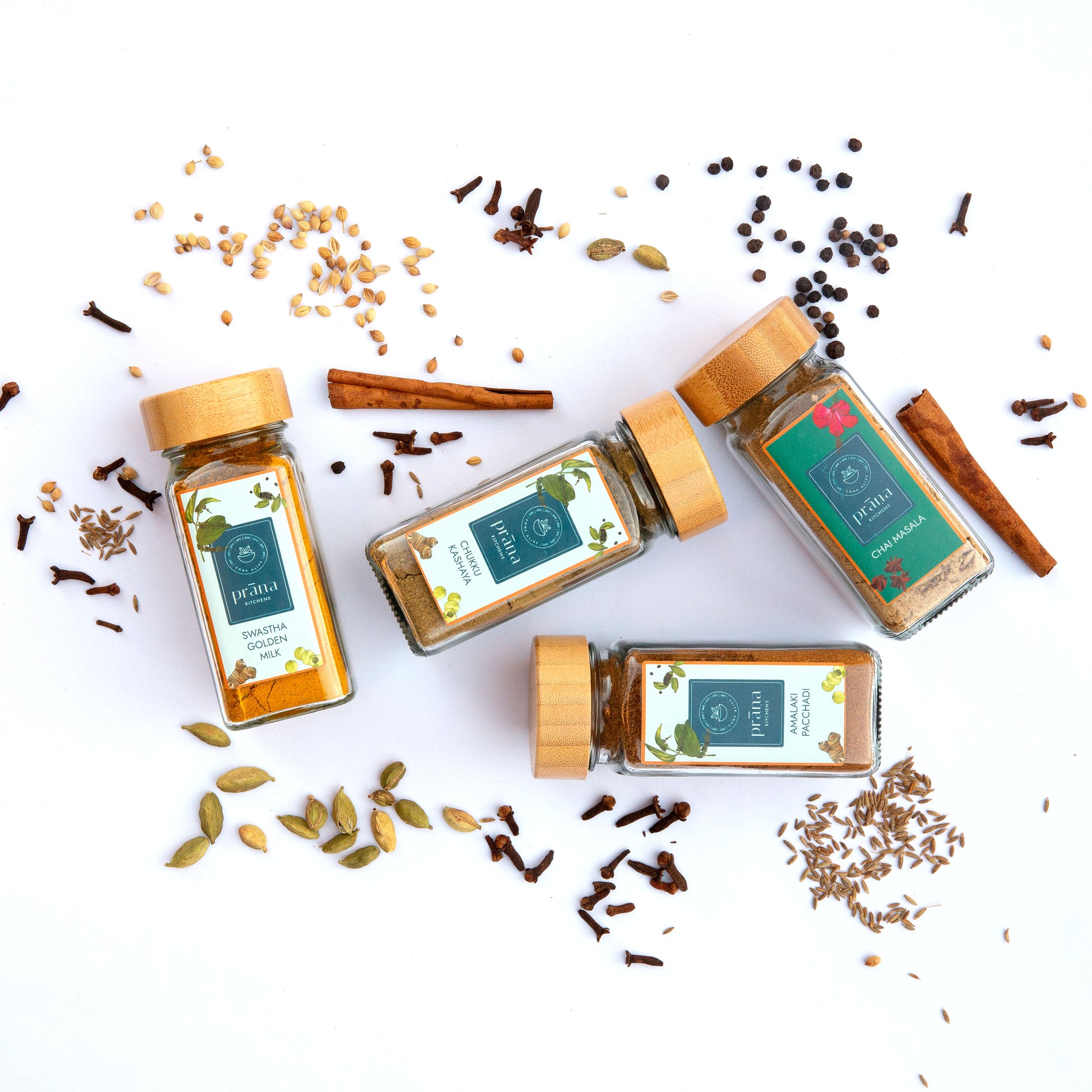 × TURMERIC POWDER, DRY GINGER POWDER, CARDAMOM POWDER, BLACK PEPPER POWDER.
