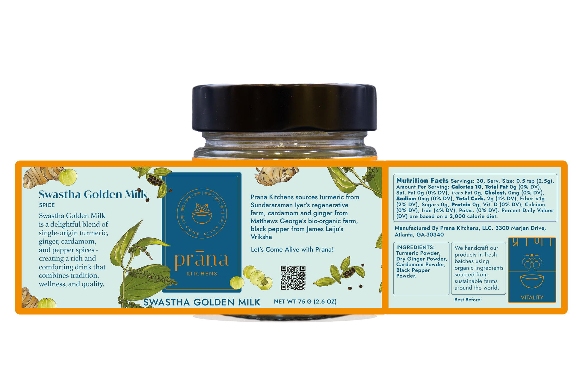 Swastha Golden Milk is a delightful blend of single-origin turmeric, ginger, cardamom, and pepper spices - creating a rich and comforting drink that combines tradition, wellness, and quality.