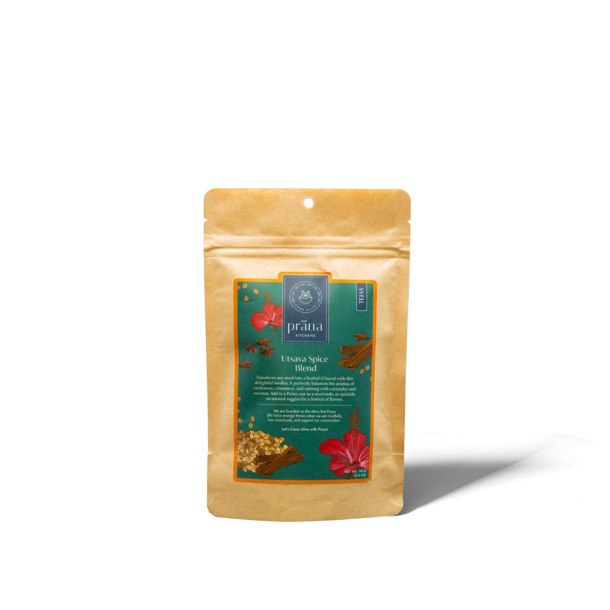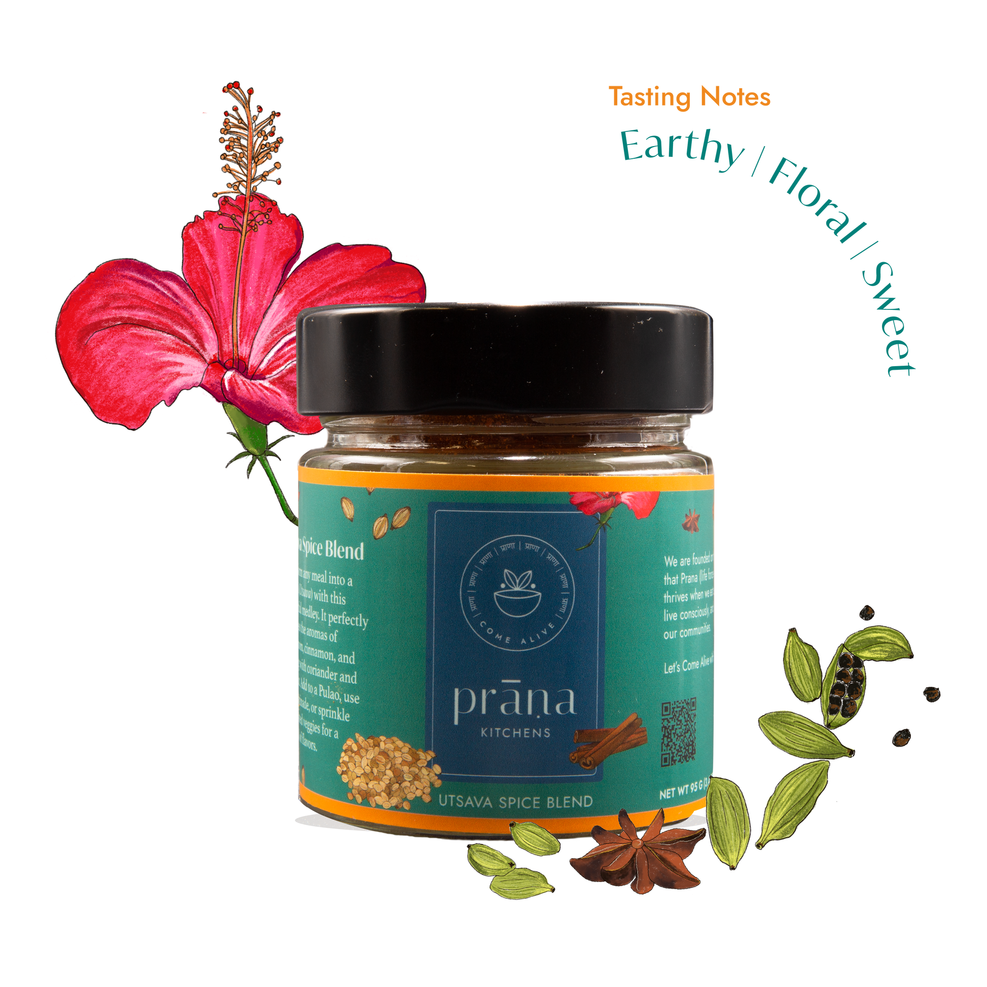 Transform any meal into a festival (Utsava) with this delightful medley. It perfectly balances the aromas of cardamom, cinnamon, and nutmeg with coriander and coconut. Add to a Pulao, use as a marinade, or sprinkle on roasted veggies for a festival of flavors.
